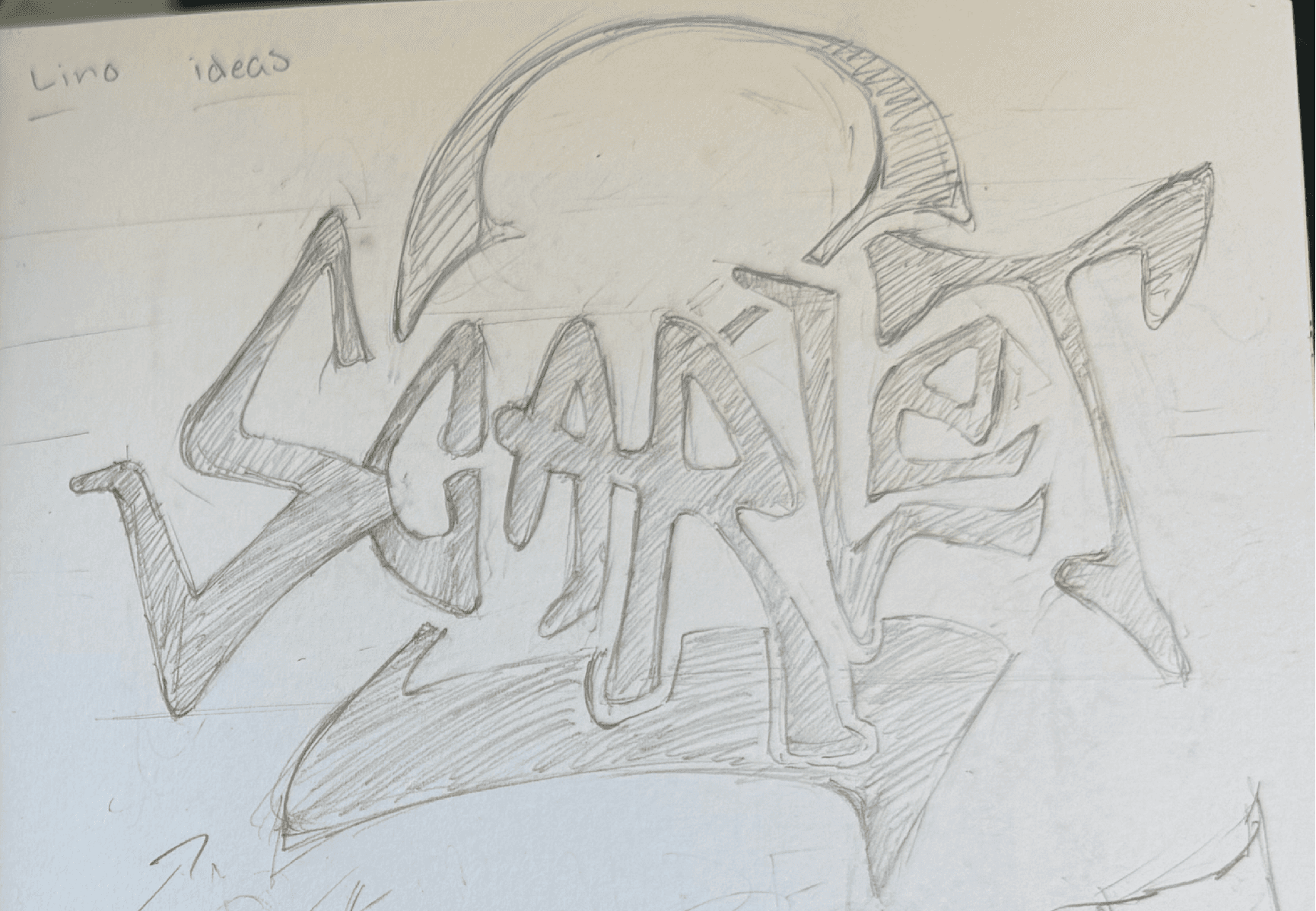 However, I wanted a physical element that would be present on ALL deliverables. I landed on doing a linoleum carving of one of my sketches which I would then scan into Illustrator.