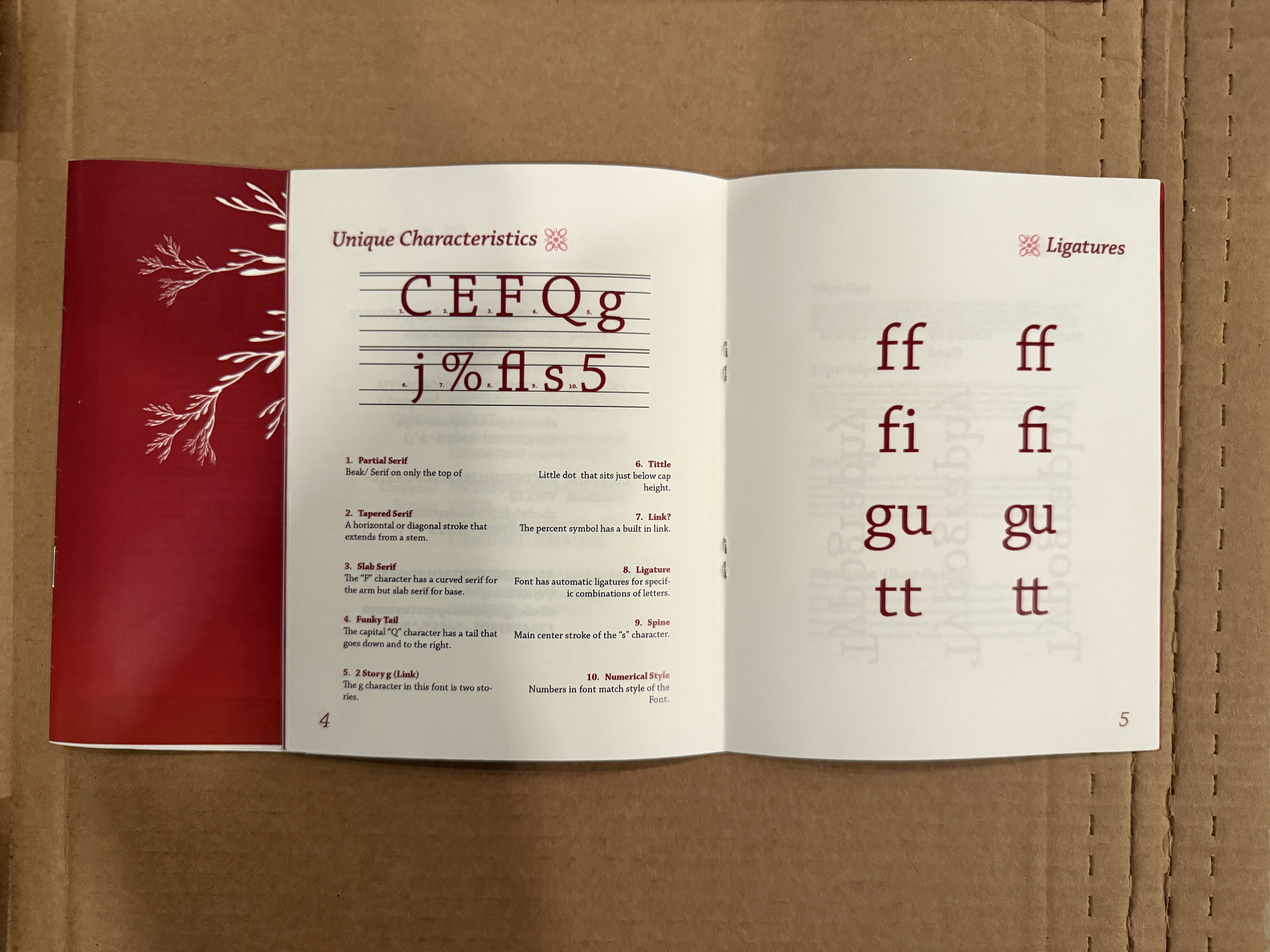 Research a typeface in order to create a type specimen and chapbook highlighting a fonts history and important features