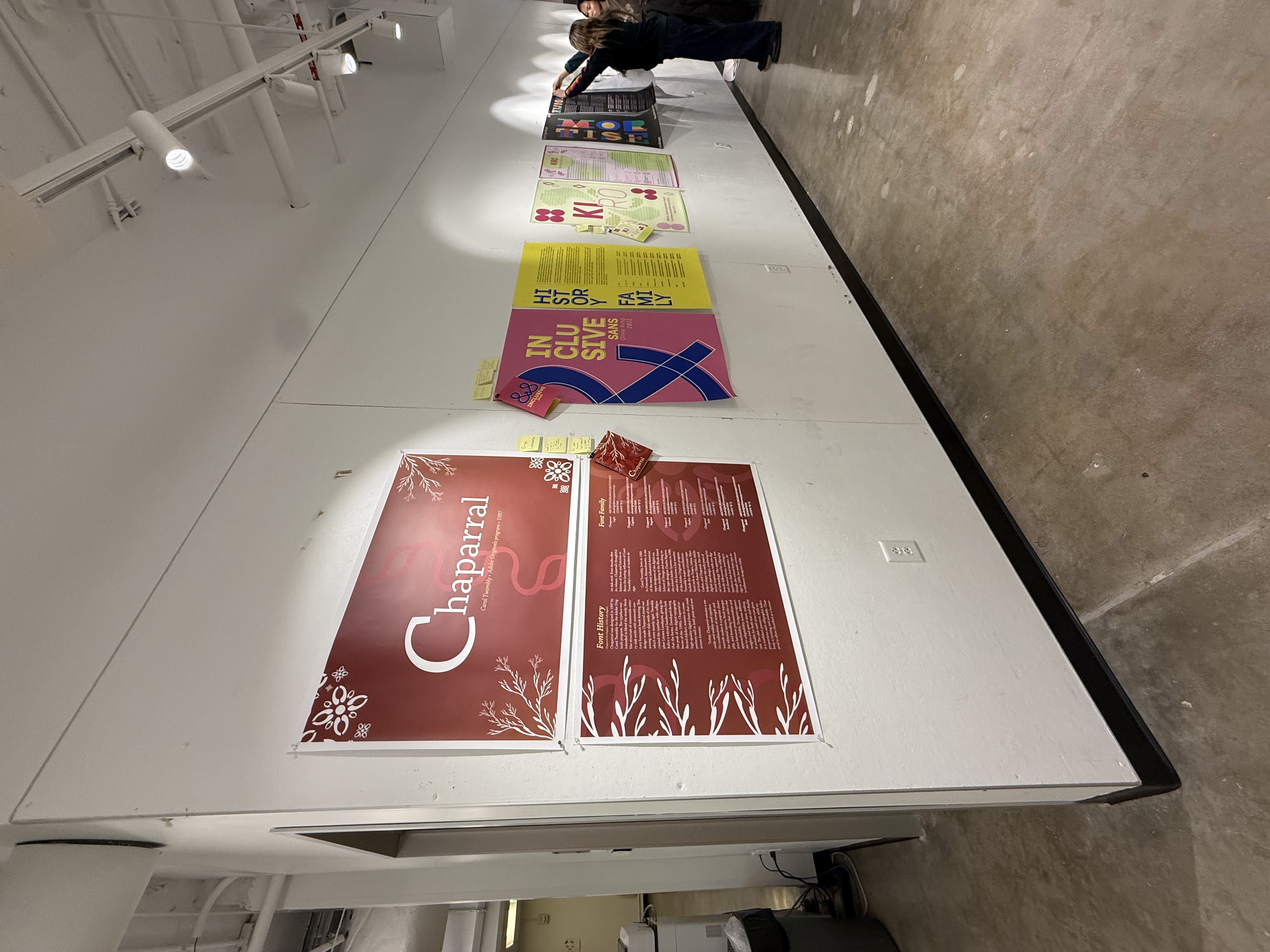 Getting feedback in a physical space also changed how I interpreted critique. It was easier to compare work, notice readability issues, and see how composition held up from a distance.
